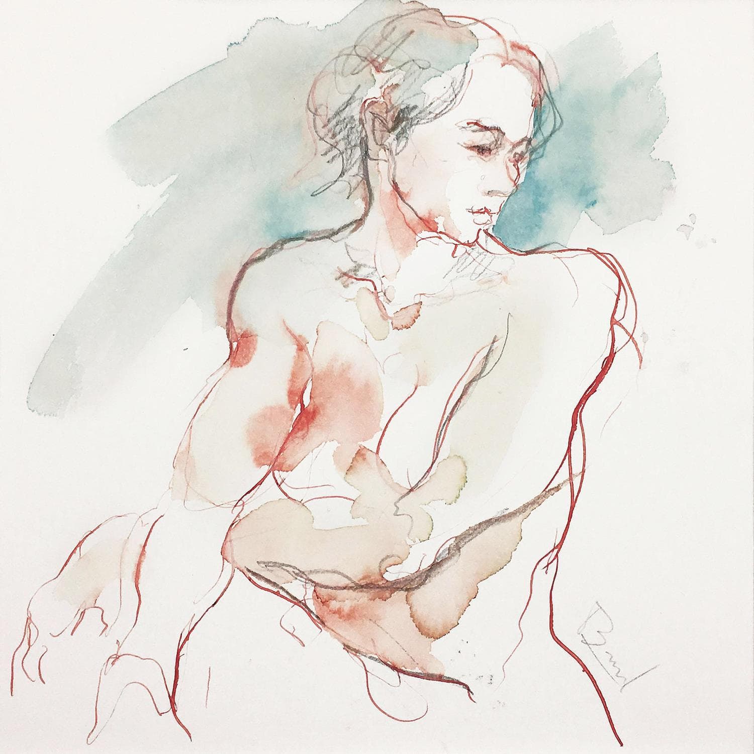 L'artiste a utilisé la technique Aquarelle pour créer cette peinture petit format sur papier de style Figuratif sur le thème nu.