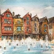 Troyes 71Peinture Troyes 71 par Hoffmann Elisabeth | Tableau Figuratif Paysages Aquarelle