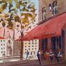 L'artiste a utilisé la technique Aquarelle pour créer cette peinture petit format sur Papier de style Figuratif sur le thème Urbain.
