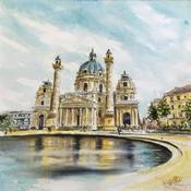 Cette oeuvre d'art contemporain unique et originale "Vienne L'église Saint-Charles-Borromée" a été réalisée par l'artiste contemporain Hoffmann Elisabeth.