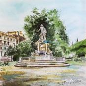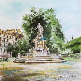 Peinture Vienne Monument de Mozart par Hoffmann Elisabeth | Tableau Figuratif Urbain Aquarelle
