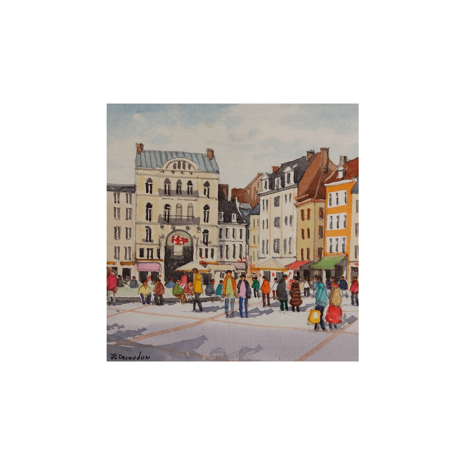 La promenade des LilloisPeinture La promenade des Lillois par Decoudun Jean charles | Tableau Figuratif Urbain Aquarelle
