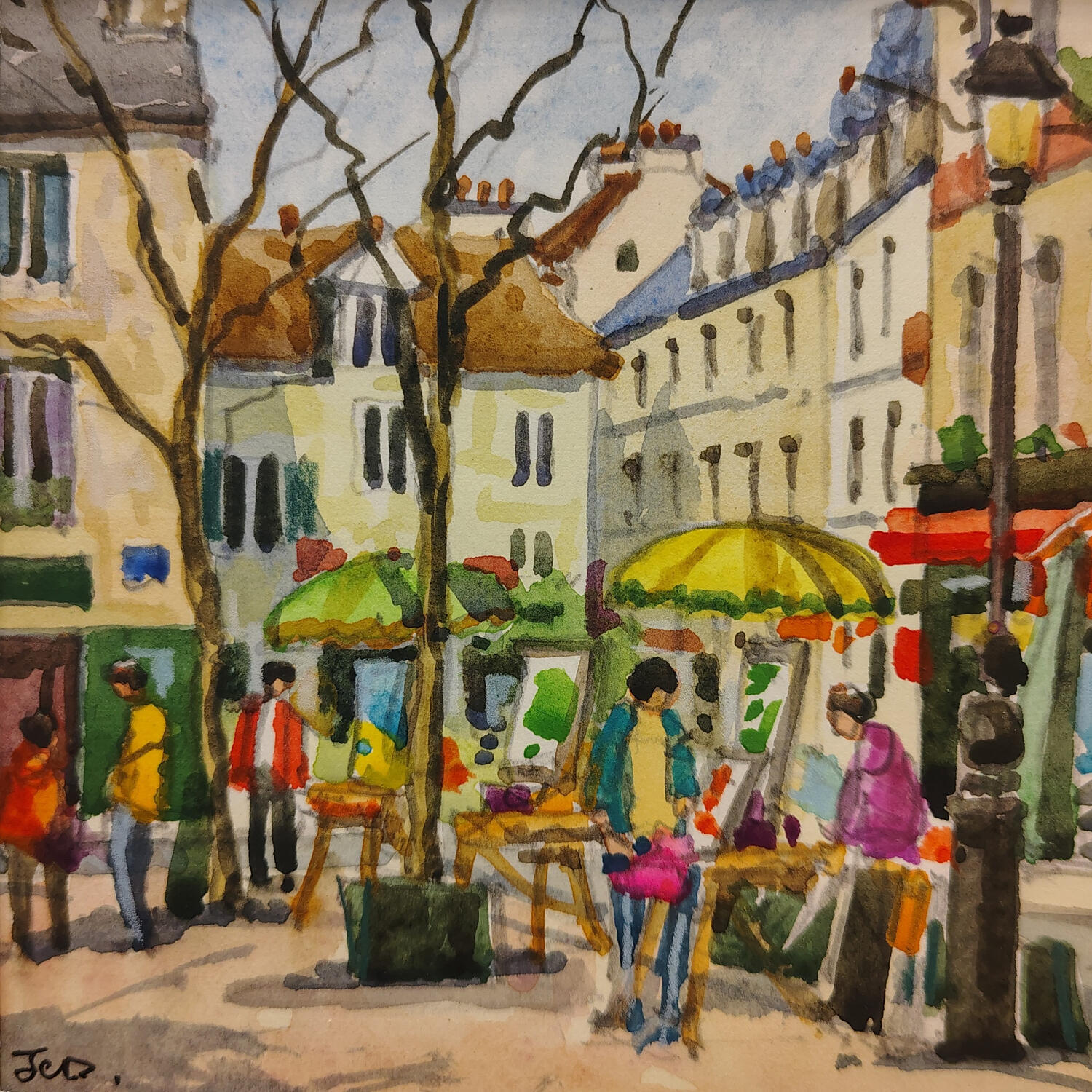 MontmartrePeinture Montmartre par Decoudun Jean charles | Tableau Figuratif Urbain Aquarelle