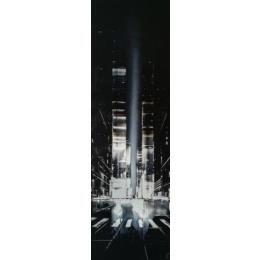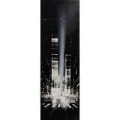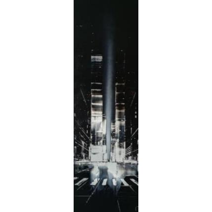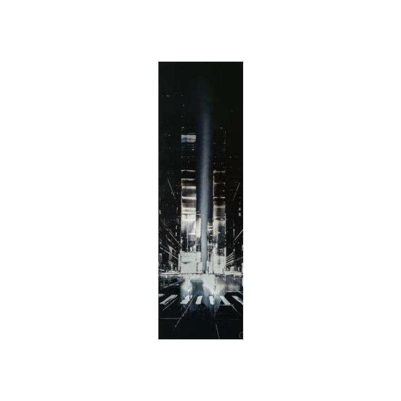 L'artiste a utilisé les techniques Feuille d'or, Laque pour créer cette peinture grand format sur Carton de style Figuratif sur le thème Urbain.