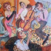 L'artiste a utilisé les techniques Fusain, Acrylique pour créer cette peinture grand format sur Toile de style Figuratif sur le thème Scènes de vie.