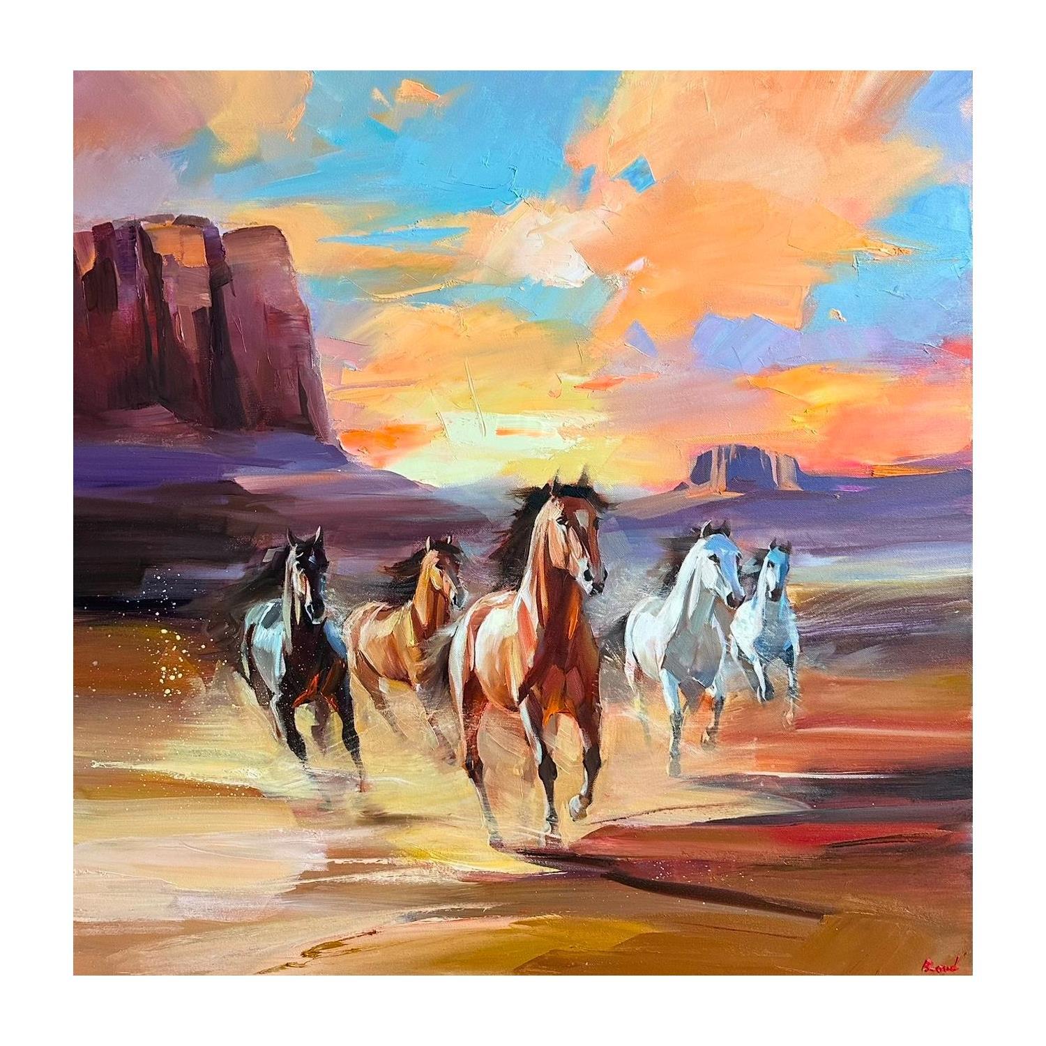 Cette oeuvre d'art contemporain unique et originale "Heros of the Wild Desert" a été réalisée par l'artiste contemporain Bond Tetiana.