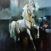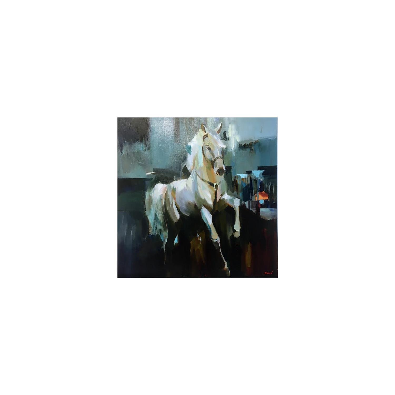 L'artiste a utilisé la technique Huile pour créer cette peinture grand format sur toile de style Figuratif sur le thème animaux.