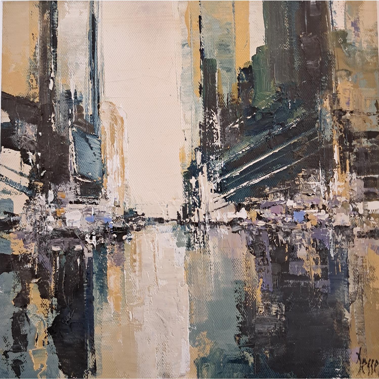 L'artiste a utilisé la technique Huile pour créer cette peinture petit format sur Toile de style Figuratif sur les thèmes Architecture, Urbain.