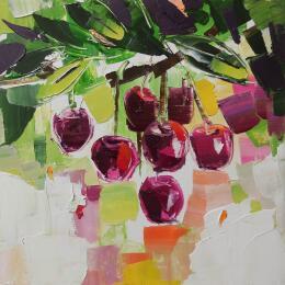 Peinture Cherries in the sun  par Lunetskaya Elena | Tableau Figuratif Huile