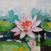 Pink water lilyPeinture Pink water lily par Lunetskaya Elena | Tableau Figuratif Huile