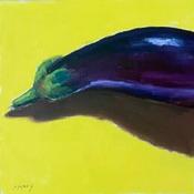 aubergine coupéePeinture aubergine coupée par Morales Géraldine | Tableau Figuratif Natures mortes Huile