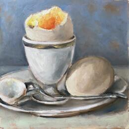 un oeuf à la coquePeinture un oeuf à la coque par Morales Géraldine | Tableau Figuratif Natures mortes Huile