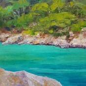 L'artiste a utilisé la technique Huile pour créer cette peinture petit format sur Papier de style Figuratif sur les thèmes Paysages, Nature.