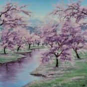 Peinture Where the moments become a petal par Requena Elena | Tableau Figuratif Paysages Huile