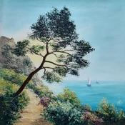 Peinture Longer la côte par Blandin Magali | Tableau Figuratif Paysages Huile