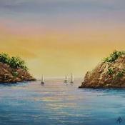 Peinture Soirée en mer par Blandin Magali | Tableau Figuratif Paysages Huile