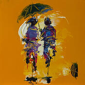 L'artiste a utilisé la technique Huile pour créer cette peinture petit format sur Papier de style Figuratif sur le thème Scènes de vie.