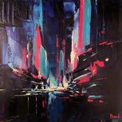 BLUE AND MAGENTAPeinture BLUE AND MAGENTA par Bond Tetiana | Tableau Figuratif Urbain Huile