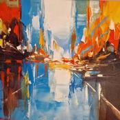 Diplômée de l'Institut Supérieur d'Art de Kiev en 2009, Tetiana a débuté sa carrière comme architecte d'intérieur. à cette époque, elle travaille à la production de ses œuvres picturales sur son temps libre, faisant de ce loisir un moment méditatif et introspectif privilégié. Au fur et à mesure cette activité s'est vue amplifiée pour devenir, depuis quelques années, aussi indispensable à son quotidien qu'essentielle à sa construction personnelle, sa pratique répondant en tout point au désir d'expression sensible et instinctif recherché par l'artiste. Entre rêveries et impressions de voyage, les œuvres de Tetiana nous immergent dans d'électrisants paysages urbains. Par une vivacité du geste combinée à un sens aiguisé de la composition, l'artiste fait naître un intense enchevêtrement de textures colorées qui vient magnifier l'atmosphère caractéristique de nos métropoles.