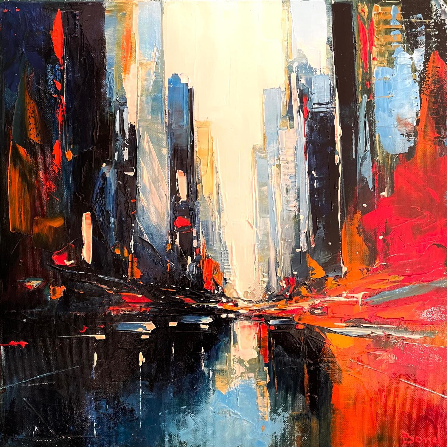 Cette oeuvre d'art contemporain unique et originale "The flaming city" a été réalisée par l'artiste contemporain Bond Tetiana.