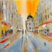 L'artiste a utilisé la technique Huile pour créer cette peinture grand format sur Toile de style Figuratif sur le thème Urbain.