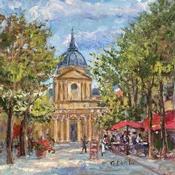 Peinture Le café sur la place de La Sorbonne  par Dontu Grigore | Tableau Figuratif Urbain Huile