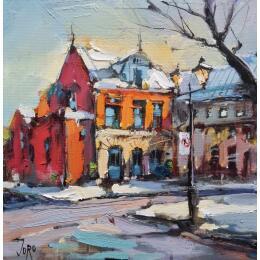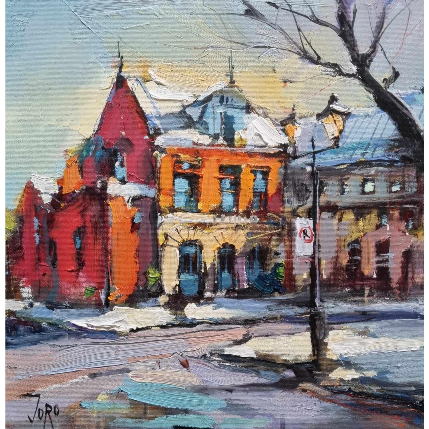 L'artiste a utilisé la technique Huile pour créer cette peinture petit format sur Toile de style Figuratif sur le thème Urbain.