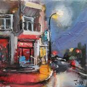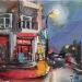 L'artiste a utilisé la technique Huile pour créer cette peinture petit format sur Toile de style Figuratif sur le thème Urbain.