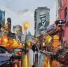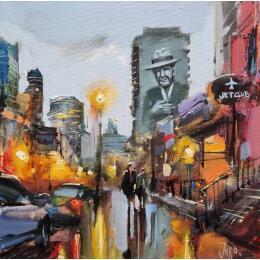 L'artiste a utilisé la technique Huile pour créer cette peinture petit format sur Toile de style Figuratif sur le thème Urbain.