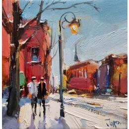 Peinture Snowy Afternoon par Joro | Tableau Figuratif Urbain Huile