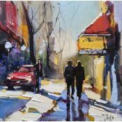 Winter Walk in MontrealPeinture Winter Walk in Montreal par Joro | Tableau Figuratif Urbain Huile