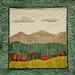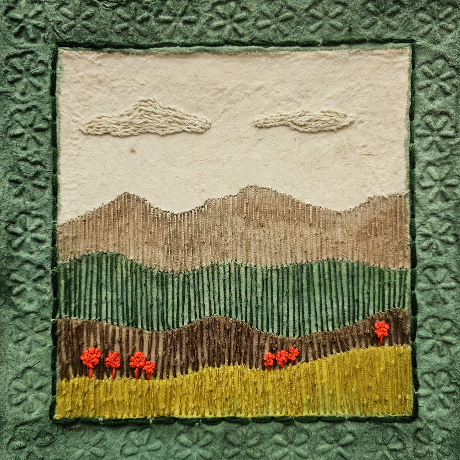 L'artiste a utilisé la broderie et l'aquarelle sur du papier amate pour créer cette petite peinture.