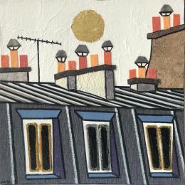 Peinture Au Petit Matin par Lovisa | Tableau Figuratif Urbain Acrylique Collage Posca Feuille d'or Upcycling