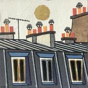 Au Petit MatinPeinture Au Petit Matin par Lovisa | Tableau Figuratif Urbain Acrylique Collage Posca Feuille d'or Upcycling