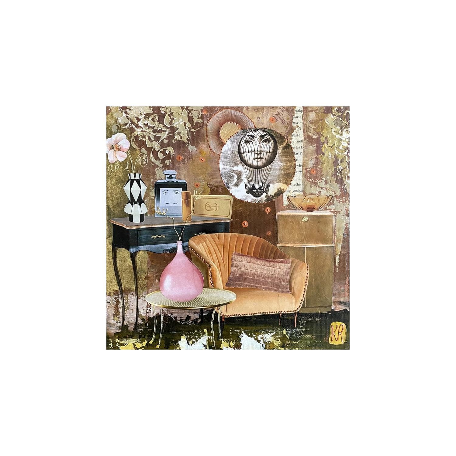 Le travail de Karine Romanelli se situe à la croisée de deux mondes. Mêlant image photographique et image peinte, l'artiste évoque la rencontre du réel avec ses formes possibles de représentation et d'interprétation. Ses collages superposent ainsi les plans, créant une distorsion de l'espace tirant les compositions vers une forme d'abstraction. Mais ils font aussi se côtoyer les lieux liant ainsi paysages urbains, intérieurs familiers et objets du quotidien dans une sorte de coupe du réel qui donne à voir dans un même temps et dans un même cadre l'intérieur et l'extérieur d'une scène. Cette liberté de la composition qui tient à l'abandon de la peinture classique et de la recherche de la perspective ancre profondément le travail de Karine Romanelli dans la démarche des Avant-Gardes et de la modernité.