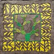 L'artiste a utilisé de la broderie et de l'aquarelle sur du papier d'écorce d'amate pour créer cette jolie peinture.