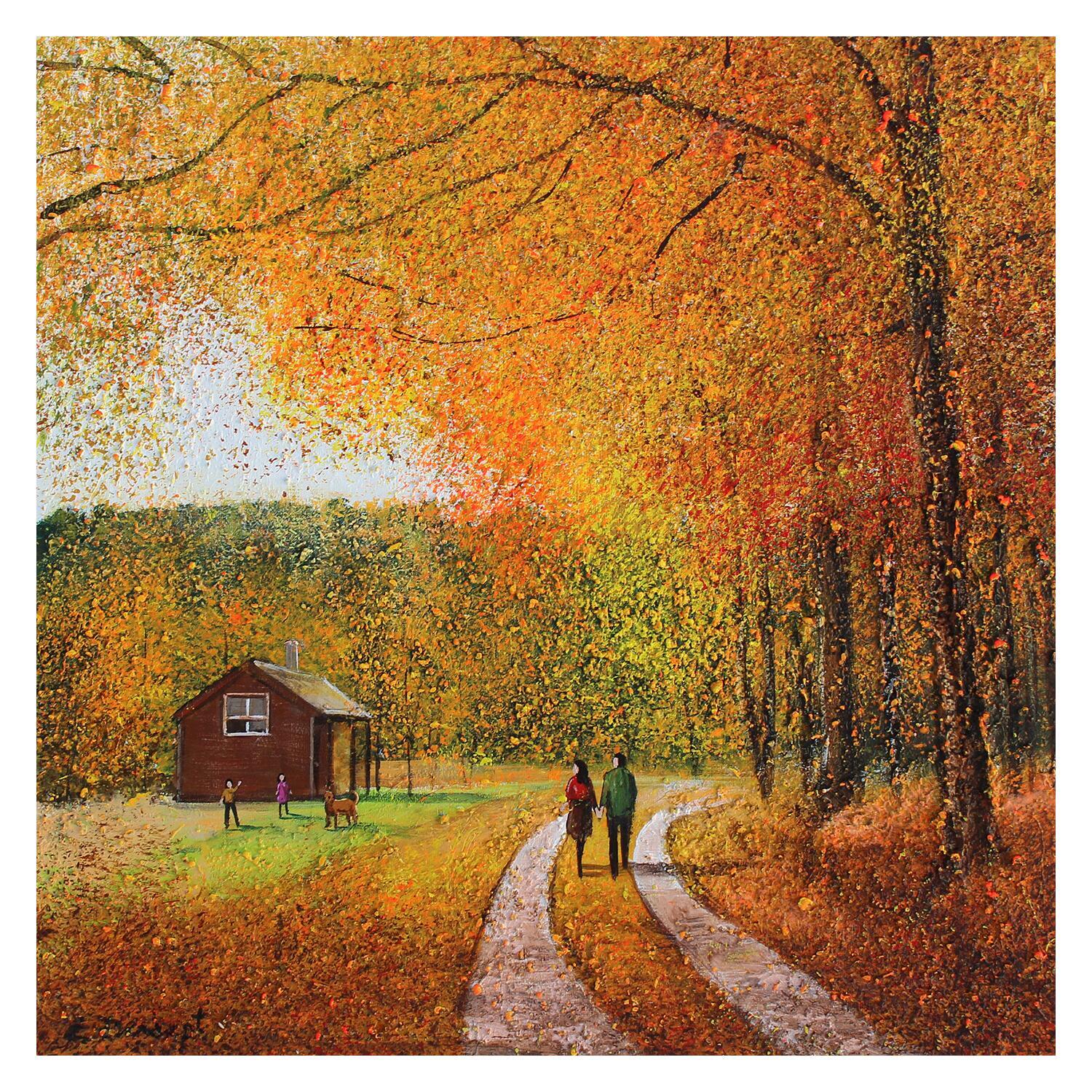 Cette oeuvre d'art contemporain unique et originale "Un automne en famille au Canada" a été réalisée par l'artiste contemporain Dessapt Elika.