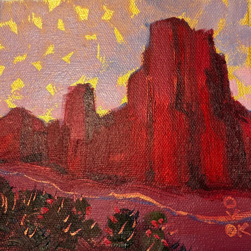Karen O’Donnell est une artiste américaine née à Phoenix et installée à Sedona, Arizona, depuis 2013. Après une carrière dans l’assurance, elle redécouvre la peinture comme une renaissance. Inspirée par les lumières changeantes de Sedona, elle crée des paysages vibrants mêlant émotion et spontanéité. Chaque toile reflète une part de son essence, une invitation à voir le monde avec émerveillement et poésie.