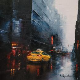 Peinture Yellow taxi  par Rochette Patrice | Tableau Impressionnisme Urbain Huile