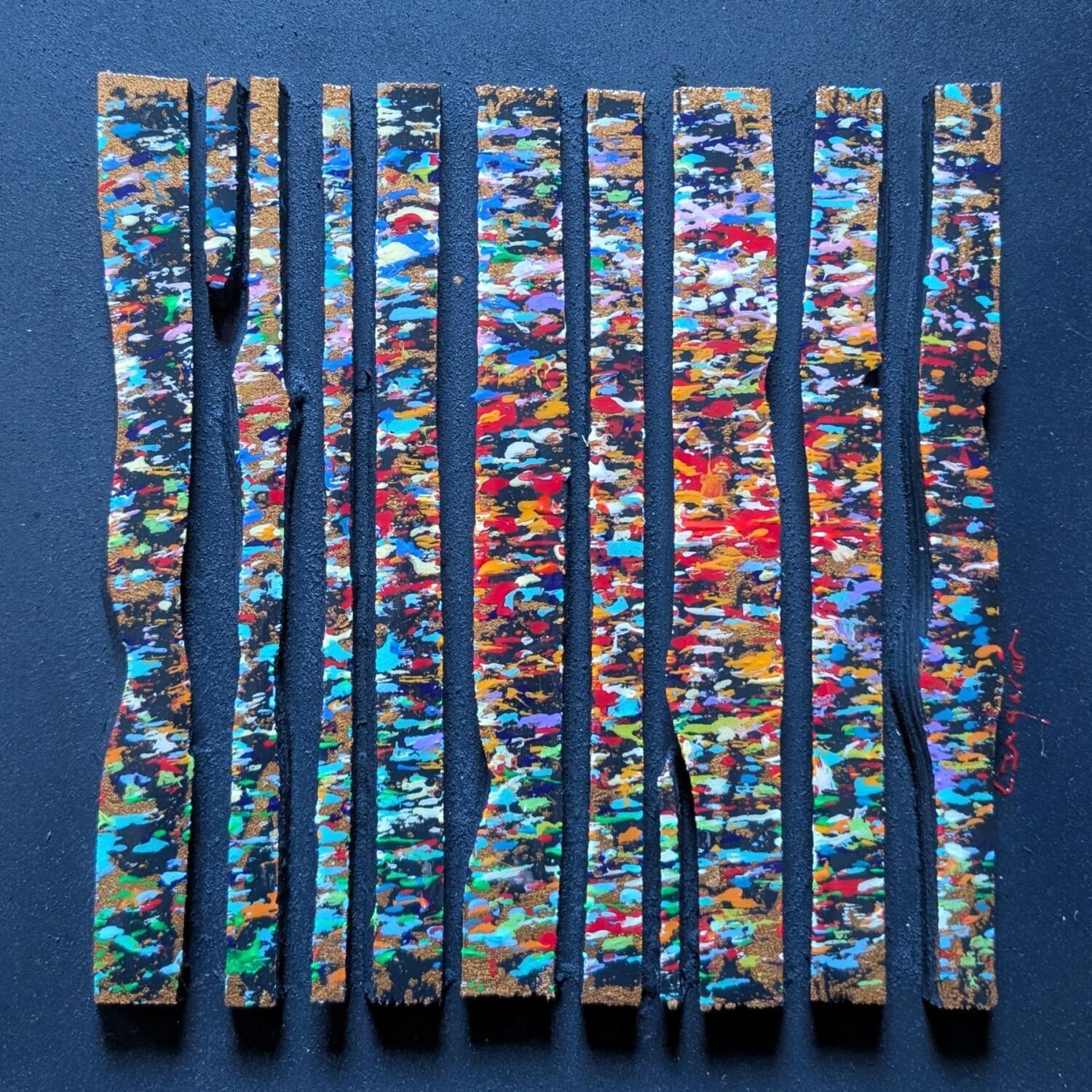 L'artiste a utilisé les techniques Acrylique, Résine, Bois pour créer cette peinture petit format sur Bois de style Matiérisme.