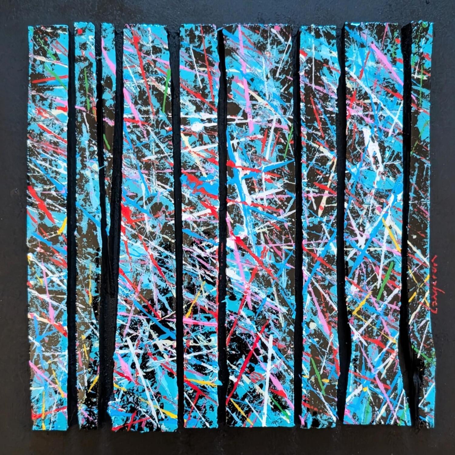 Cette oeuvre d'art contemporain unique et originale "Bc9 touche croisée bleu rouge" a été réalisée par l'artiste contemporain Langeron Luc.