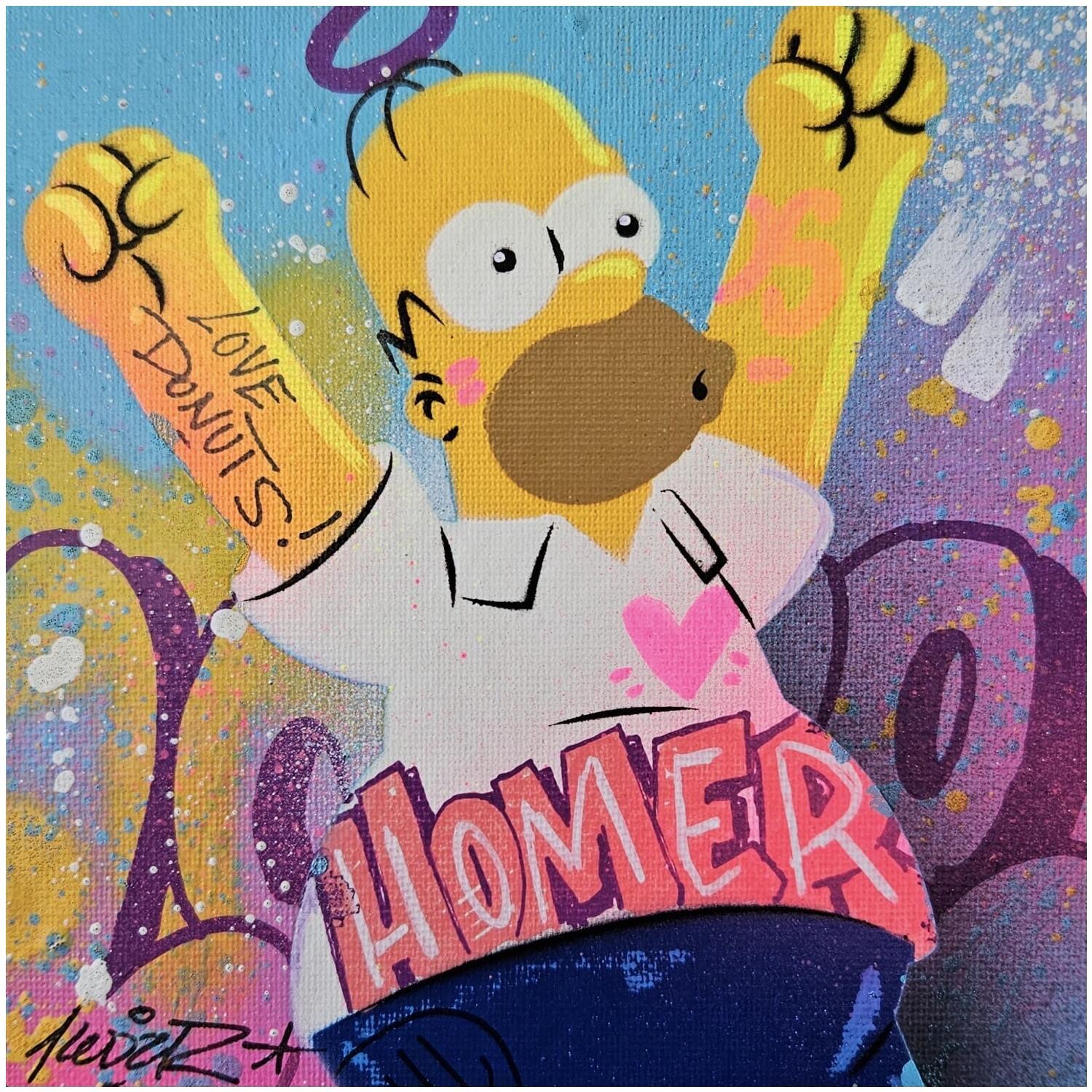 Cette oeuvre d'art contemporain unique et originale "Homer Youpi !" a été réalisée par l'artiste contemporain Lemoine Mael.