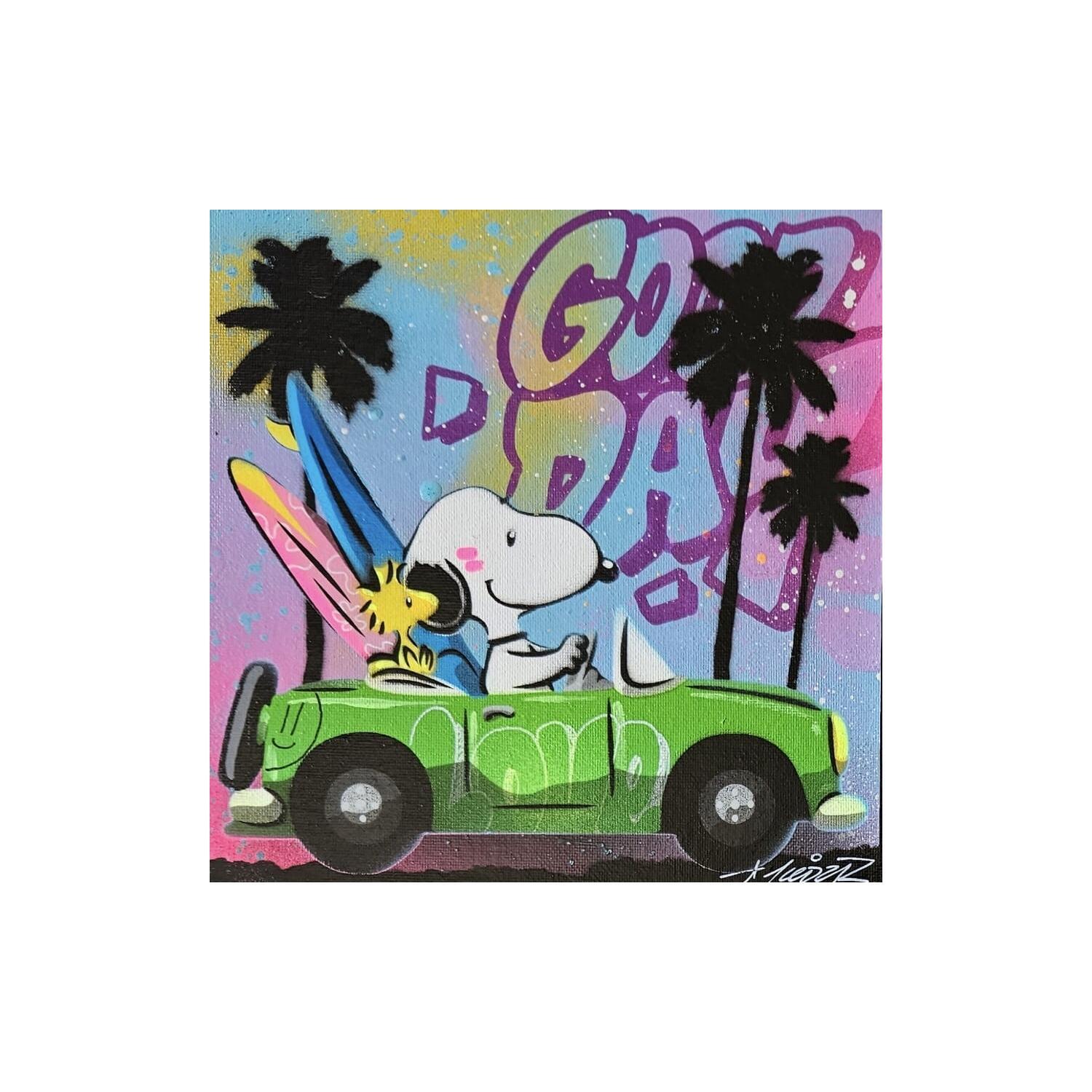 Cette oeuvre d'art contemporain unique et originale "Snoopy surf" a été réalisée par l'artiste contemporain Lemoine Mael.