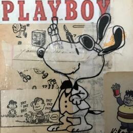 Cette oeuvre d'art contemporain unique et originale "Snoopy play boy vintage" a été réalisée par l'artiste contemporain Kikayou.