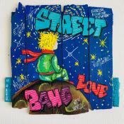 L'artiste a utilisé les techniques Acrylique, Bois, Posca pour créer cette peinture petit format sur Bois de style Pop-art sur le thème Icones Pop.