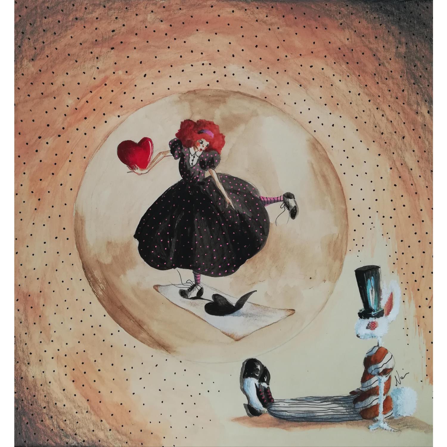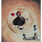 L'artiste a utilisé les techniques Acrylique, Collage pour créer cette peinture petit format sur Papier de style Surréalisme sur les thèmes Animaux, Scènes de vie.