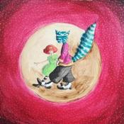 L'artiste a utilisé les techniques Acrylique, Collage pour créer cette peinture petit format sur Papier de style Surréalisme sur les thèmes Animaux, Enfant, Icones Pop.