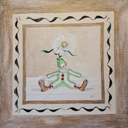 L'artiste a utilisé les techniques Acrylique, Aquarelle pour créer cette peinture petit format sur Papier de style Surréalisme sur les thèmes Icones Pop, Nature, Scènes de vie.