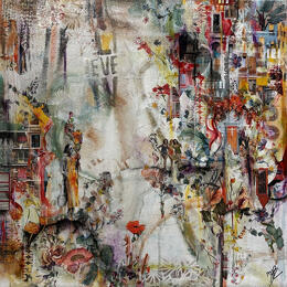 L'artiste a utilisé les techniques Acrylique, Collage, Huile pour créer cette peinture grand format sur Papier de style Surréalisme.