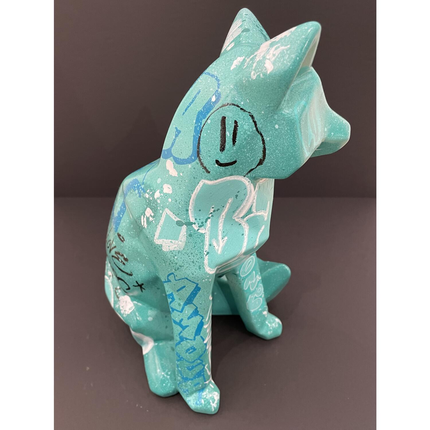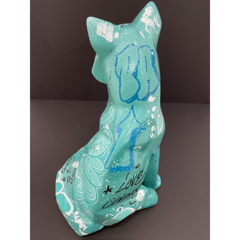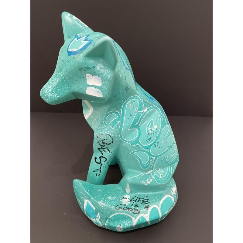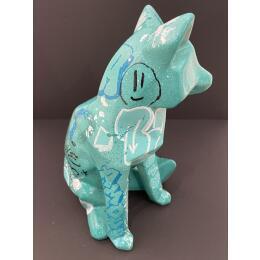 L'artiste a utilisé les techniques Acrylique, Graffiti pour créer cette sculpture petit format en Carton toilé de style Pop-art sur le thème Icones Pop.